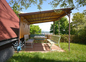 Terasovitý pozemok je rozdelený na relaxačnú a úžitkovú časť.