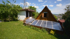 Chata : útulná a zateplená 2-izbová chata, v obľúbenej záhradkárskej oblasti Baňa Bankov. Chata je drevená s obkladom, situovaná na slnečnom, kaskádovito upravenom pozemku a ponúka krásny výhľad na celé mesto. Na prízemí je priestranná hala s výmerou : 35 m2, s kuchynskou linkou a výstupom na uzatvorenú loggiu. Dreveným schodišťom je prístupné podkrovie, slúžiace ako spálňa, k dispozícii je taktiež loggia. Strecha je zvnútra zateplená, zvonku pokrytá kanadským šindľom. Interiér je upravený dreveným obkladom, na podlahe je keramická dlažba. Vstupné dvere sú drevené, okná na loggii plastové. V chate je zavedená elektrina - 230 V, celoročná voda na pozemku s kohútikmi na 3 miestach. Suché WC. Na náradie a skladovanie vecí a potravinových zásob služí menšia, samostatná, dvojpodlažná stavba, ktorej spodná časť je zapustená vo svahu a má chladivé vlastnosti pivnice. Z bočnej strany chaty je altánok s pôsobivým výhľadom na mesto, vonkajší pevný gril a detský domček.